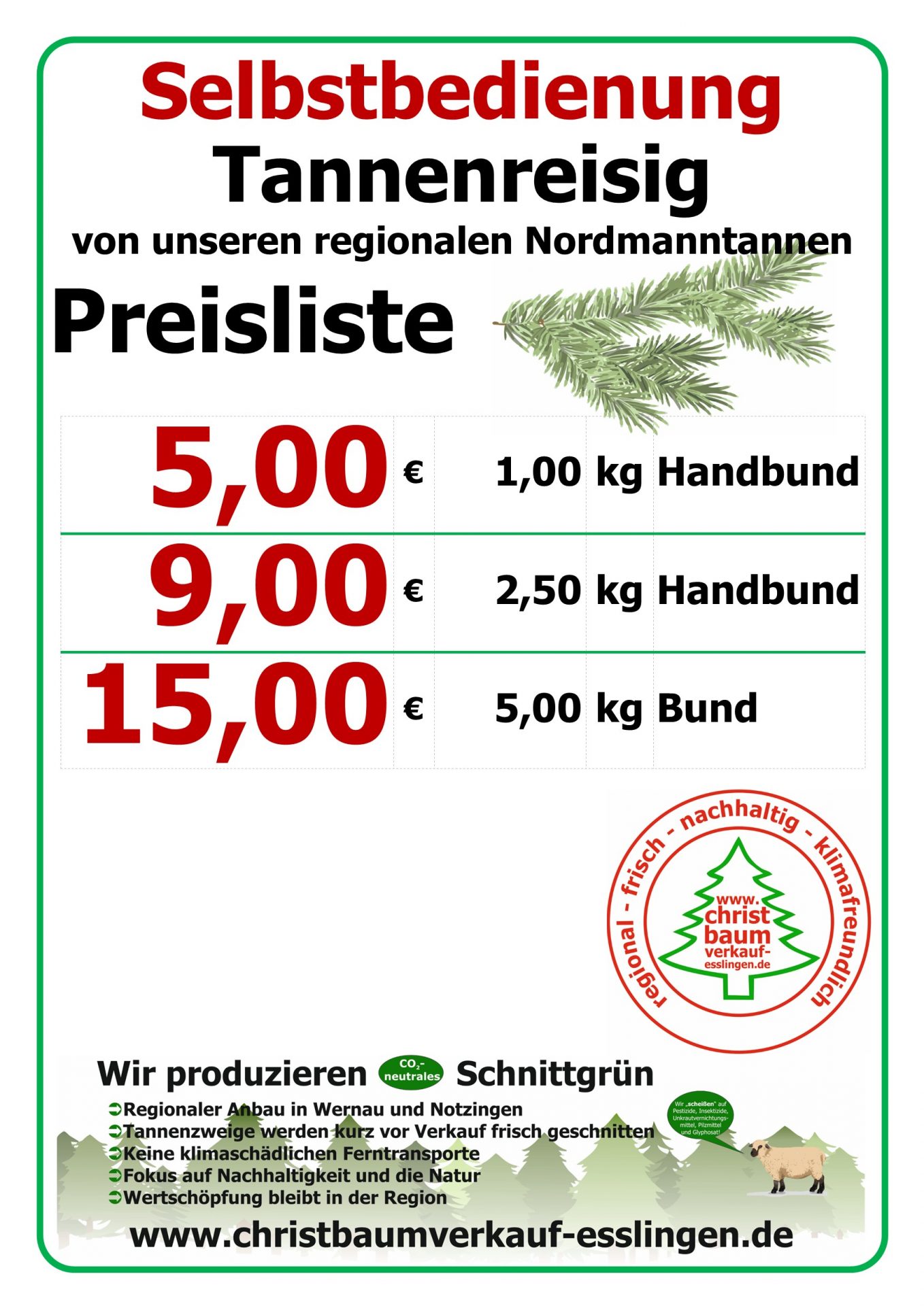Größere Mengen bitte vorbestellen unter tannenreisig@christbaumverkauf-esslingen.de .